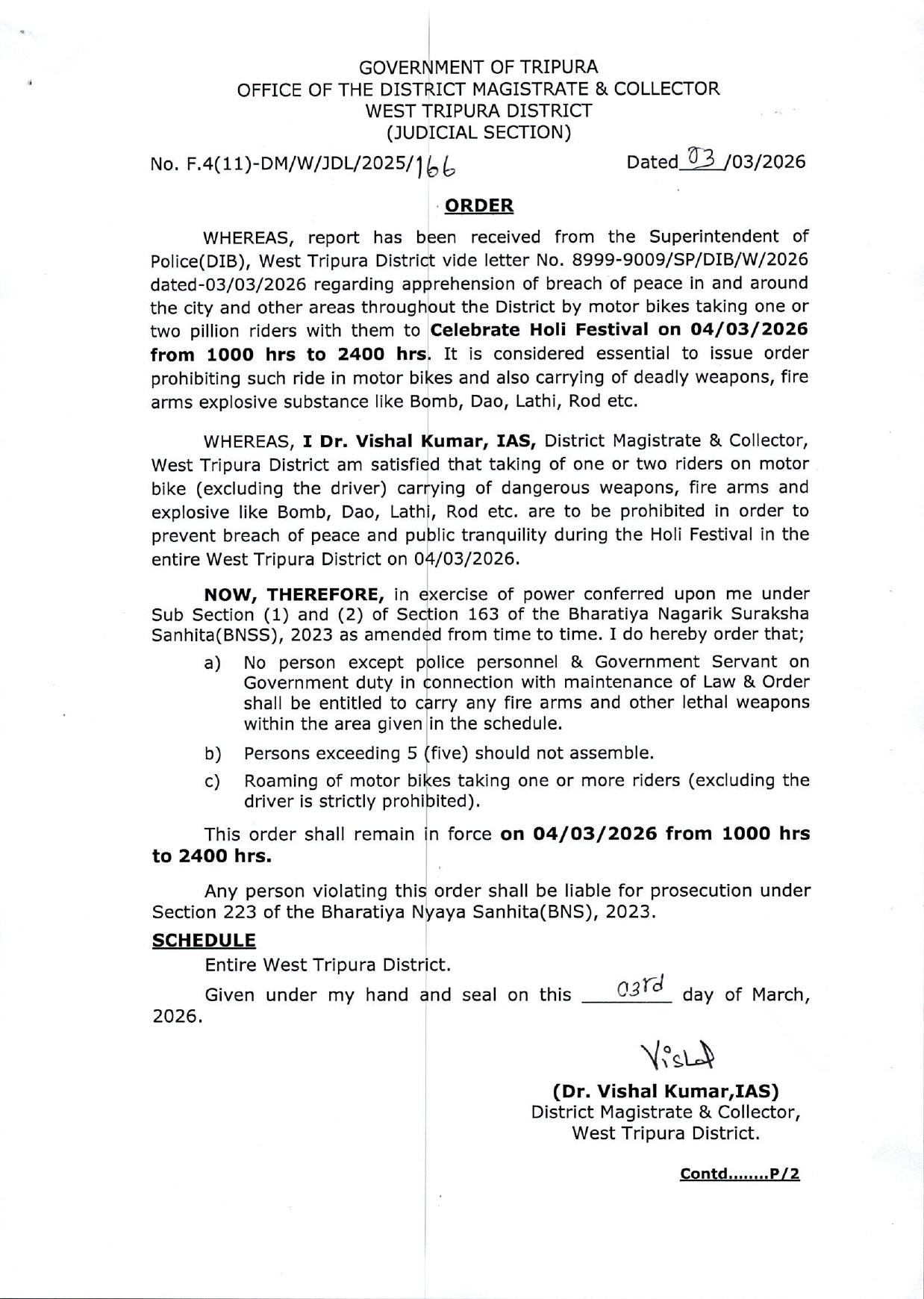 Appeal by CEO, Tripura to maintain peace in Post Counting Period